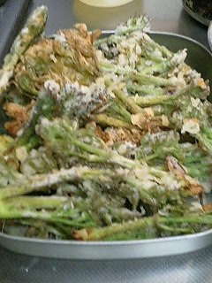 さっき収穫して、天麩羅にしたら結構な量で・・・・・・揚げてるだけでお腹イッパイ。