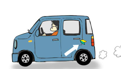 もしくは「あまりの強風で、リヤ部分から横のドア部分まで、つるつると流されてしまった」と言う壮大なドラマがあったのかも知れない。