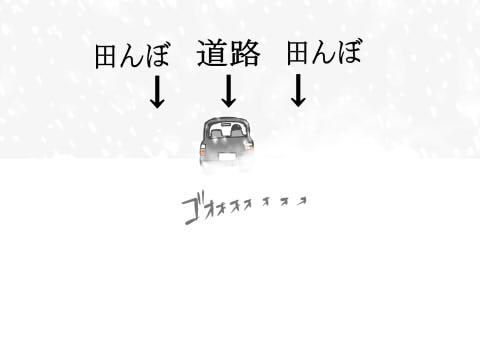 なぜかと言いますと、曲がった先は一面の雪原と言いますか、何も無い田んぼだと思っとったのですよ。だって上から下まで白一色だし。