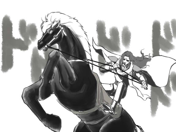 白いサラブと黒王号に乗って駆けつけてくるよ!