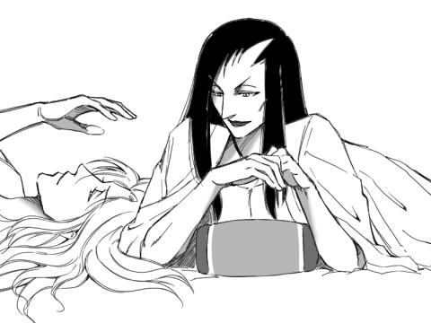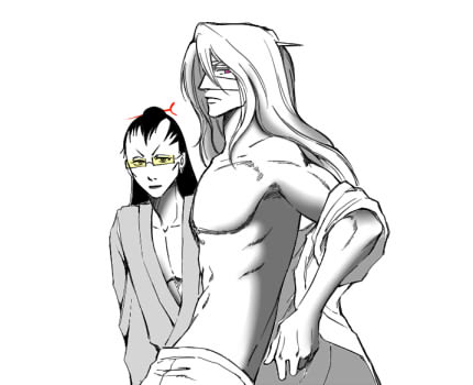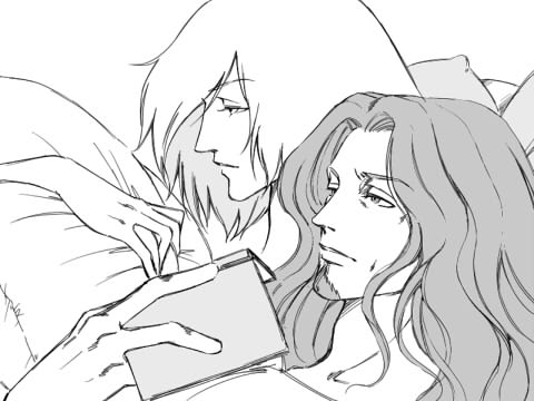 久しぶりの勘久絵。 ベッドに寝転んで、テレビと読書でまったり。
