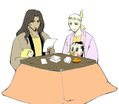 年賀状出す人リストを確認中のイツフタ夫婦