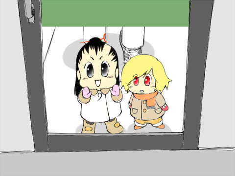 身長が足りなかったのか、ドアの外を見ておりました。
