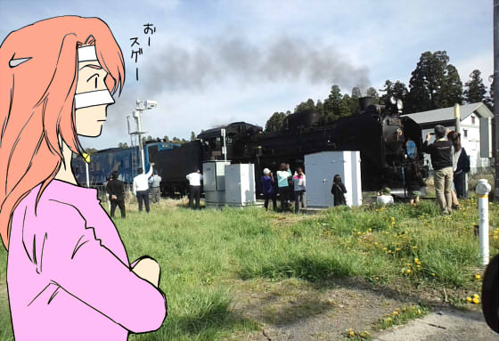 すぐそばに小さな駅があるのですが、遮蔽物で見えない…と思ったら真っ黒な煙がボッハー!