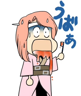 食事中に結構な確率で、口の中を噛み切ってしますのでタスケテ。とかで良いのかw