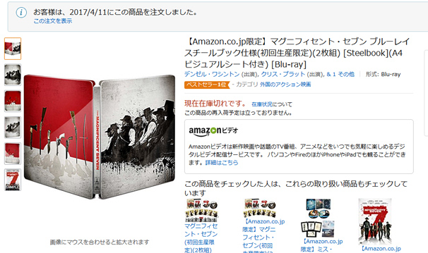 そして知らん間にマグ7のスチールブックBDが46秒で売り切れてて草生える