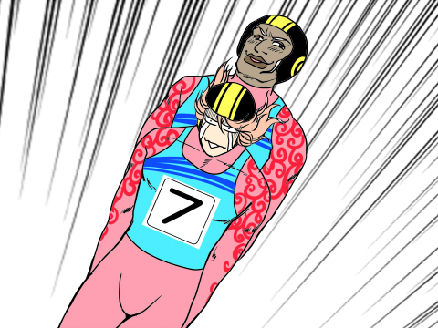 リュージュはあのソリに一人で乗って、剥き出しのまま130キロを超える速度で滑って行くアレ。